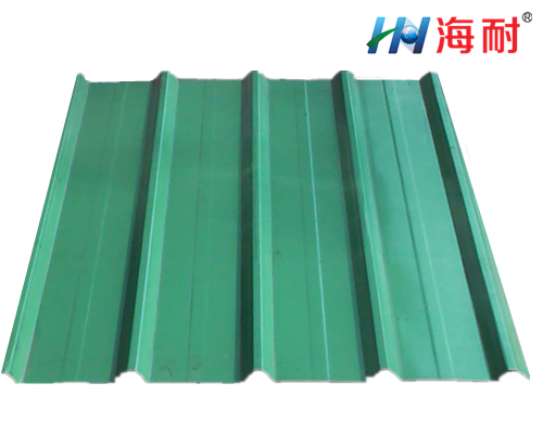 海耐防腐壓型鋼板它以金屬板基板,在基板的表面覆有耐老化膜層及隔熱鋁箔、一種耐腐蝕金屬屋面,包括鋁箔、改性瀝青樹脂保護層及鍍鋅鋼板,鍍鋅鋼板設置于金屬屋面的中間作為基層板,在鍍鋅鋼板的上、下表面涂覆有改性瀝青樹脂保護層,改性瀝青樹脂保護層的表層覆蓋有鋁箔,鋁箔為設置在金屬屋面的上下表層。本實用新型,利用了鍍鋅鋼板的強度高及低熱膨脹率的優勢,并使用改性瀝青樹脂保護層將鍍鋅鋼板包裹嚴密,有效提高了鍍鋅鋼板的耐腐蝕性;改性瀝青樹脂保護層也起到了良好的緩沖作用,大大降低了降雨、冰雹所產生的噪音,在改性瀝青樹脂保護層外,覆以有輕微凹凸的鋁箔,在提高產品的反射率的情況下,又起到了抗氧化及防腐的作用,集防腐、降噪、保溫于一體,具有體積小、運輸方便、易安裝的特點。同時耐老化膠膜將鋁箔隔熱膜與彩鋼板或鍍鋅板牢牢膠合在一起,阻止空氣中的腐蝕性氣體進入基材,使彩鋼板不易生銹。耐紫外線,不開裂、起鼓、剝落等,其耐老化性能超過市場上任何同類產品。